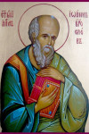 Апо́столе, Христу́ Бо́гу возлю́бленне,/ ускори́ изба́вити лю́ди безотве́тны,/ прие́млет тя, припа́дающа,/ И́же па́дша на пе́рси прие́мый./ Его́же моли́, Богосло́ве,/ и належа́щий о́блак язы́ков разгна́ти,// прося́ нам ми́ра и ве́лия ми́лости.
