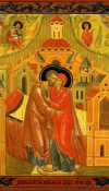 З тією самою благою вісткою з’явився ангел і святому Іоакиму в пустелі й повелів йому йти до Єрусалима. Там свята праведна Анна зачала Благословенне Чадо і народила Пресвяту Діву Марію.
