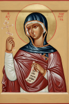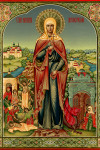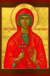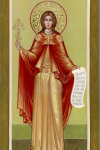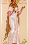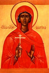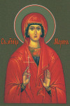 Де́вства добро́тами преиспещре́нна, де́во,/ нетле́нными венцы́ венча́лася еси́, Мари́но,/ кровьми́ же му́ченичества обагре́на,/ чудесы́ просвети́вшися исцеле́ний,// благоче́стно, му́ченице, прия́ла еси́ по́честь побе́ды твоего́ страда́ния.