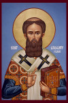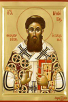 Правосла́вию наста́вниче, святи́телем украше́ние,/ богосло́вцем побо́рниче непобеди́мый, Григо́рие чудотво́рче,/ Солу́ню вели́кая похвало́, пропове́дниче благода́ти,// моли́ Христа́ Бо́га спасти́ся душа́м на́шим.